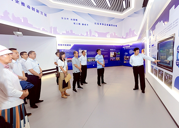 于新华副处长一行首先到集团公司展厅参观,对上海德华会展策划服务有限公司发展历程、产业项目概况、未来发展规划以及党建工作进行全面了解。